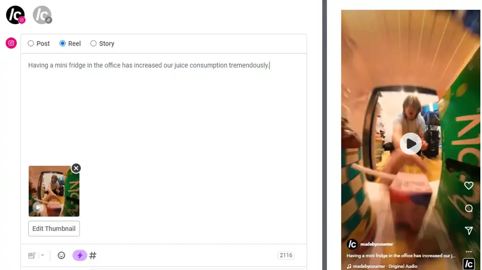 For Counter, many of our recent efforts have involved long term projects which develop our approach to filmmaking, digital presence, the acquisition/organization of clients, and other fundamental decisions. I have recently found a lot of fun in taking a break from these large scale projects to make something quick and dirty, in the form of short social media videos.