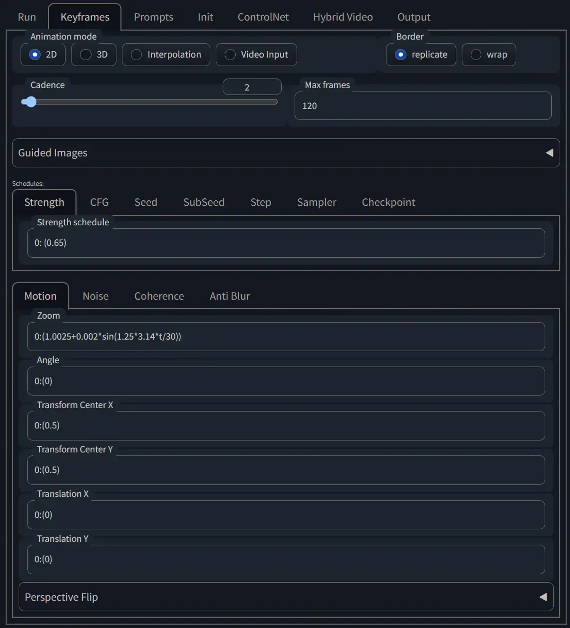 What you might notice in the above sequence is distinct shifts in which the subject matter, while abstract, seems to shift from one thing to another. This is achieved through keyframing prompts. You begin your sequence with an initial image or (init) as well as an initial prompt. From there you can keyframe additional prompts to be fed to the computer at certain frames. This allows for the image to "animate" beyond the AI recycling the same prompt over and over again while you manipulate the camera (which lends to pretty mediocre results).