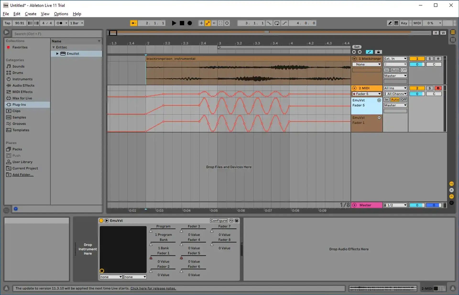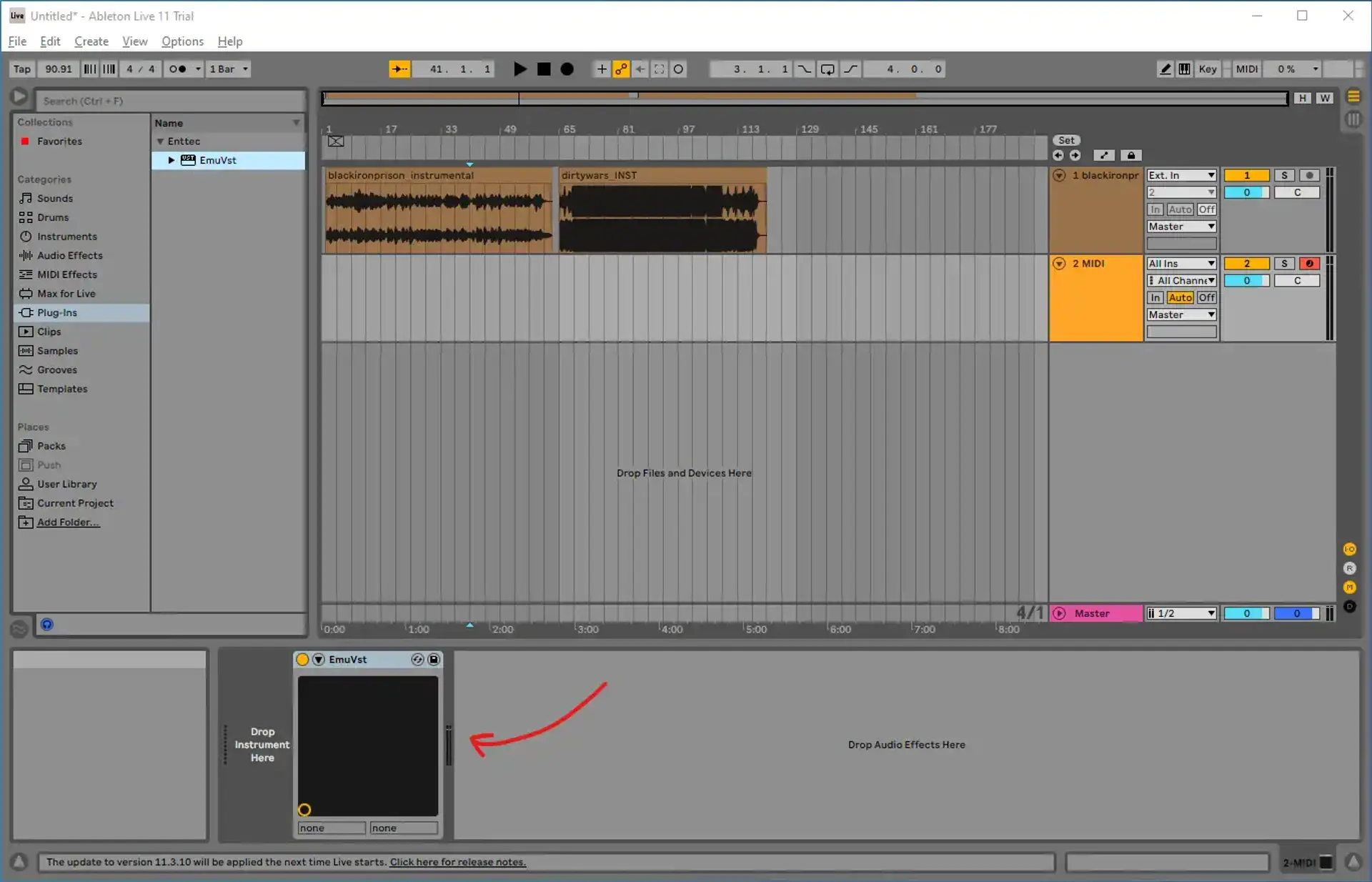 EmuVST needs an empty MIDI track to house the automations that are used to control the lights. Create an empty track and then drag over the EmuVST plugin. You should see a small black box appear in the bottom left of the interface.