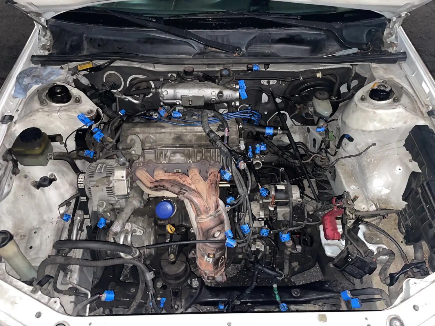 Luke and I got right to work on the “preproduction” of this process. Since we were already used to assembling documents that outlined film projects, we used the same approach for preparing the engine bay. Every step of the process was recorded and organized in a spreadsheet with video instructions, tools needed, and hazards to watch out for. We only had one weekend to complete the engine swap, so we did as much preparation and completed as many steps as possible before the engine was pulled. Every hose, wiring connection, and part was labeled on each end before it was removed. Two days may be plenty of time for someone with lots of experience. For us, many of these processes were a first, so I did everything in my power to ensure we would stick to the plan with ease and clear direction.